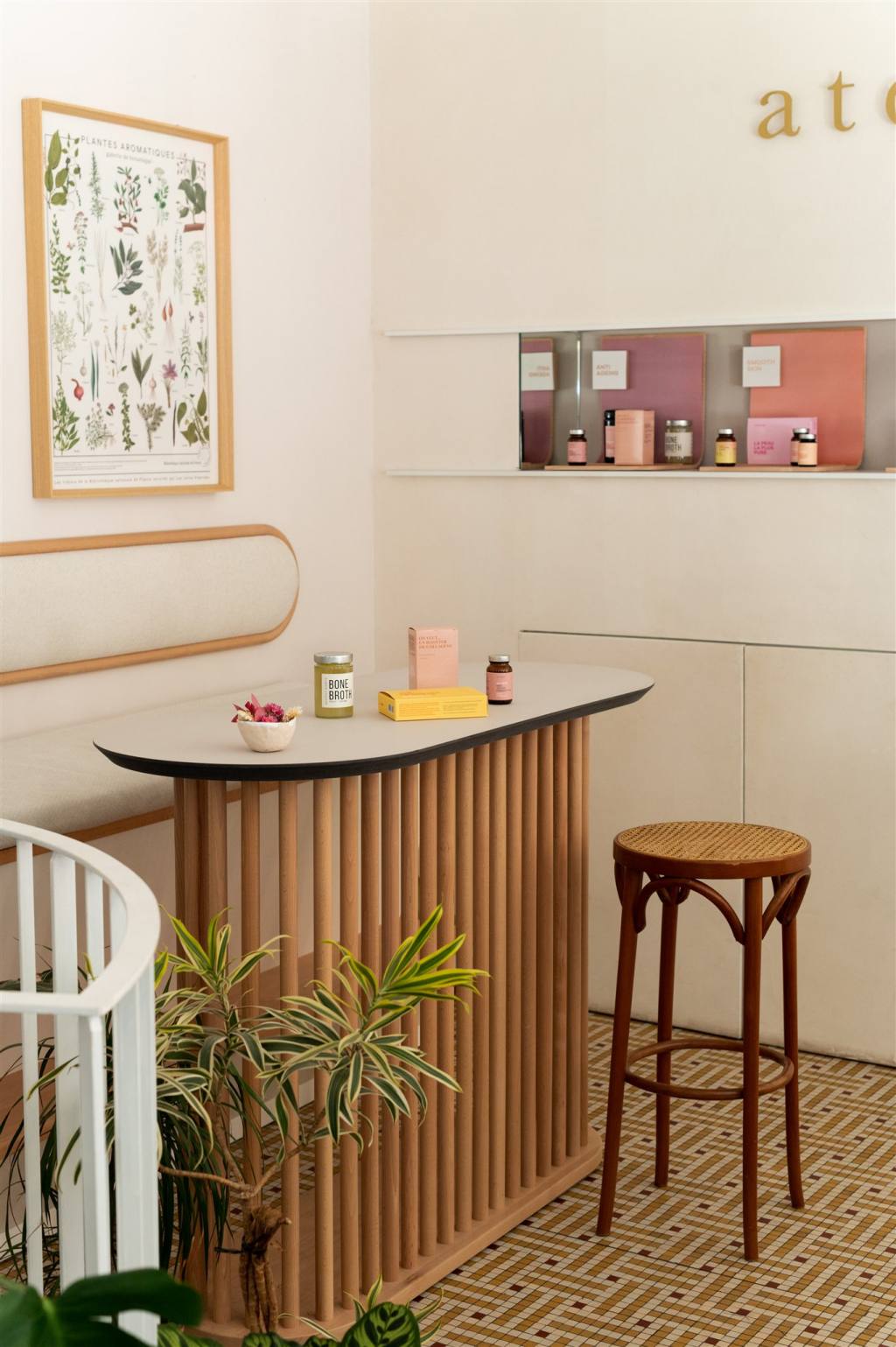 Le coeur d'Atelier Nubio vibre au concept store éponyme, attenant à l'atelier de production des jus. Situé au n°4 de la célèbre rue Paul Bert, dans le quartier de charonne à Paris, le concept store recèle tous les produits de la marque : les compléments, les accessoires, les jus, les bouillons, les collabs et les éditions limitées.